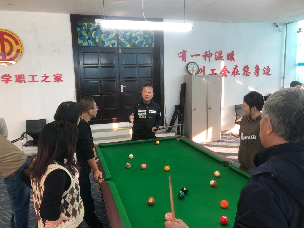 此次活动一经推出便吸引了众多教职工踊跃参与,在校园内掀起了一股台球热潮。在专业培训教师的耐心指导下,大家从最基础的台球知识学起,涵盖了握杆姿势、瞄准技巧、击球力度控制等各个方面。教职工们认真聆听、仔细观察,随后纷纷拿起球杆,在球桌上进行实践操作。大家在台球的世界里尽情享受着运动带来的乐趣,忘却了工作的疲惫和压力。